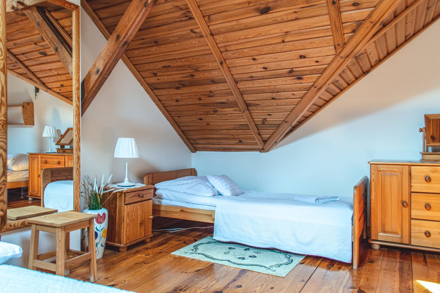 Izba Dębowa, nazwana jest na cześć potężnego dębu, symbolu mocy i wytrzymałości, oferuje wyjątkowy komfort i elegancję, umożliwiając gościom pełne odprężenie po dniu pełnym wrażeń.